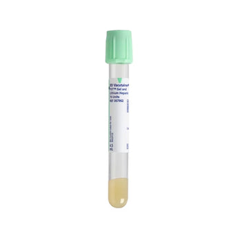 The 4.5mL BD Vacutainer® PST™ Plasma Separation Tube with BD Hemogard™ Light Green Closure is built for fast, accurate plasma preparation. With 84 USP units of lithium heparin and a polymer gel barrier, it prevents clotting and enables clean plasma separation—ideal for high-throughput chemistry testing. The Hemogard™ closure enhances safety by minimizing blood exposure during handling.