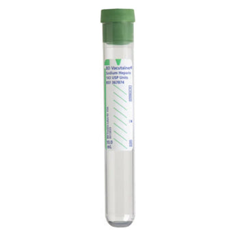 The 10mL BD Vacutainer® Heparin Tube with Conventional Green Closure is designed for efficient plasma separation in routine chemistry testing. With Sodium heparin 158 USP units, it provides strong anticoagulant action to prevent clotting and preserve sample integrity. The conventional green cap offers a familiar, easy-to-handle design trusted across clinical settings.