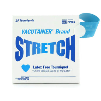 The BD Vacutainer® Stretch Latex-Free Tourniquet is designed to provide safe, comfortable vein constriction during blood collection procedures. Made from latex-free material, it reduces the risk of allergic reactions while offering optimal stretch and tension control. Its soft, durable texture ensures patient comfort and consistent performance across various clinical settings.